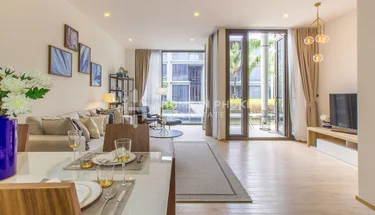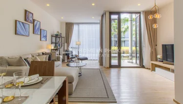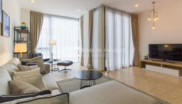 This 2-bedroom, 2-bathroom duplex condo is part of Baan Mai Khao in Mai Khao, Thalang District, Phuket. The unit offers 129 sqm of living area on the ground floor with direct pool access. The open-plan living, dining, and kitchen area is located on the lower floor, featuring contemporary furnishings and a bright atmosphere with pool views. The two ensuite bedrooms are located on the upper floor, ensuring privacy and comfort. Available fully furnished and ready to move in.