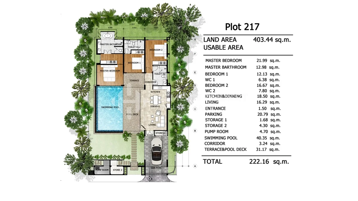 This private pool villa with 3 bedrooms and 4 bathrooms is part of Peykaa Estate in Thep Krasatti, Thalang District, Phuket. Set within a serene gated community just minutes from the west coast, the villa sits on a 404.44 sqm land plot and offers 222.16 sqm of single-level living space designed for comfort, privacy, and easy tropical living.