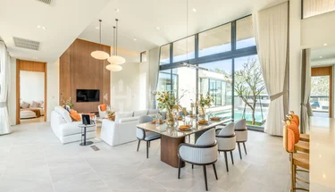 Эта строящаяся вилла с частным бассейном в эксклюзивном комплексе Amber Chamber предлагает 4 спальни и 4 ванные комнаты общей площадью 516.29 кв. м. Сочетая современный тропический дизайн с теплыми янтарными оттенками, вилла акцентирует внимание на обилии естественного света, уединенности и изысканном комфорте.