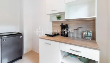 На первом этаже расположены небольшая гостиная и столовая зона, кухня и прачечная зона сзади, а также гостевой санузел для дополнительного удобства. На втором этаже находятся две спальни с ванными комнатами, обеспечивающие приватность, причем главная спальня оснащена частным балконом.