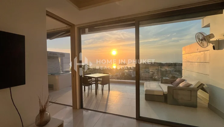 ประตูบานเลื่อนกระจกแบบสูงจากพื้นจรดเพดานจากพื้นที่นั่งเล่น เปิดออกสู่ระเบียงส่วนตัวขนาดใหญ่โอ่โถง สร้างสรรค์ประสบการณ์การใช้ชีวิตที่เชื่อมโยงระหว่างภายในและภายนอกได้อย่างไร้รอยต่อ ระเบียงมาพร้อมจากุซซี่ส่วนตัว และมอบทัศนียภาพทะเลแบบพาโนรามา ทำให้เป็นพื้นที่ที่สมบูรณ์แบบสำหรับการพักผ่อนหย่อนใจ การสังสรรค์ หรือเพลิดเพลินกับพระอาทิตย์ตกดินอันเลื่องชื่อของภูเก็ต