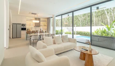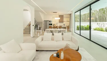 开放式起居、厨房和用餐区无缝连接,营造出一个明亮、温馨的空间,非常适合家庭聚会。落地窗模糊了室内和室外生活的界限,让自然光线和热带微风充满整个家。